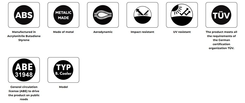 Sada se skládá ze dvou 3mm dílů z vysoce kvalitního ABS, vyrobených pomocí nejmodernějších technologií vstřikování plastů, doplněných o ocelové držáky, které zajišťují potřebnou tuhost, s decentní černou texturovanou povrchovou úpravou, jež perfektně ladí s designem motocyklu.