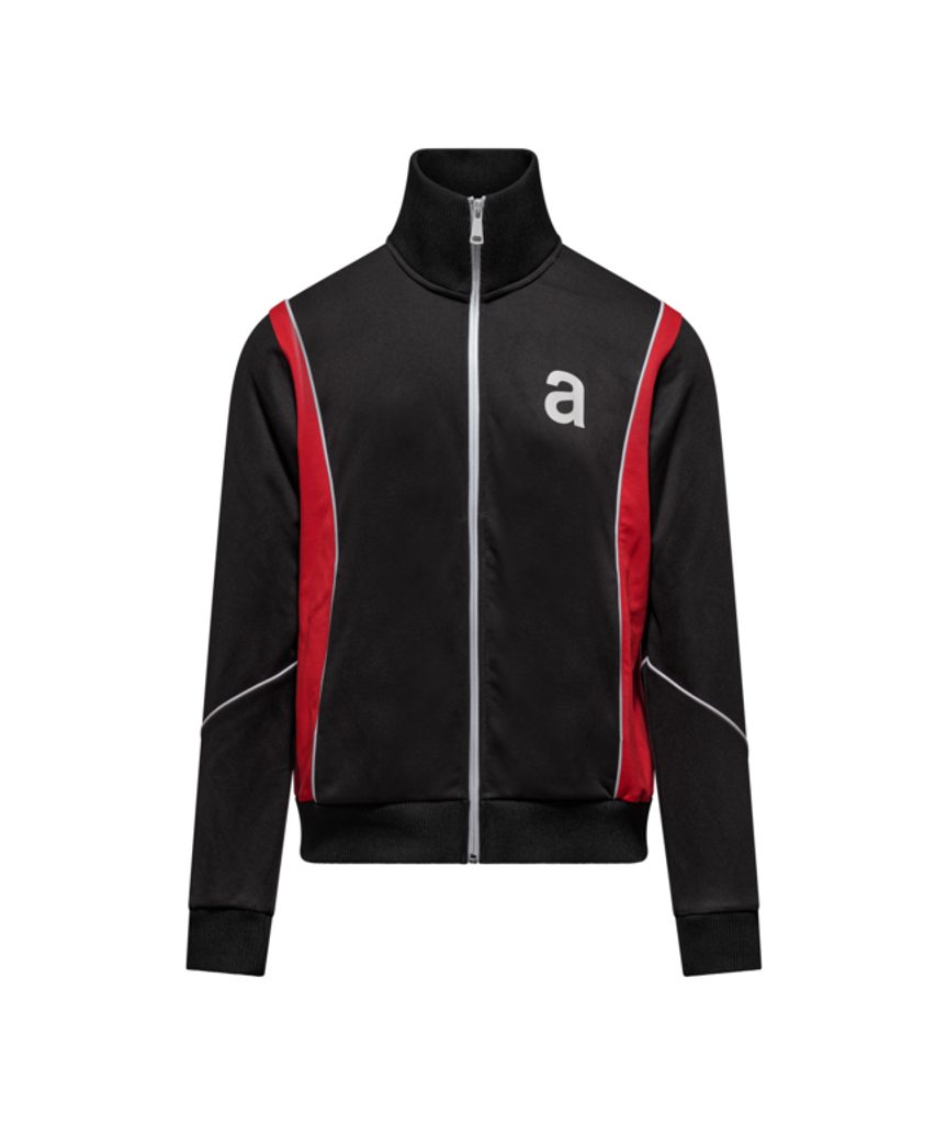 Tato sportovní bunda je vyrobena ze 100 % acetátu a polyesteru a zaujme svým klasickým střihem a výrazným panelovým designem s kontrastními barvami a bílým lemováním.