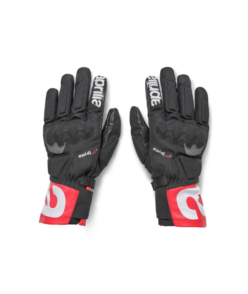 Vodotěsné rukavice Aprilia Experience by Alpinestars s izolací Thinsulate™ a chrániči kloubů Level 1 KP nabízejí špičkový tepelný komfort a profesionální ochranu pro náročné jízdy v proměnlivém počasí.