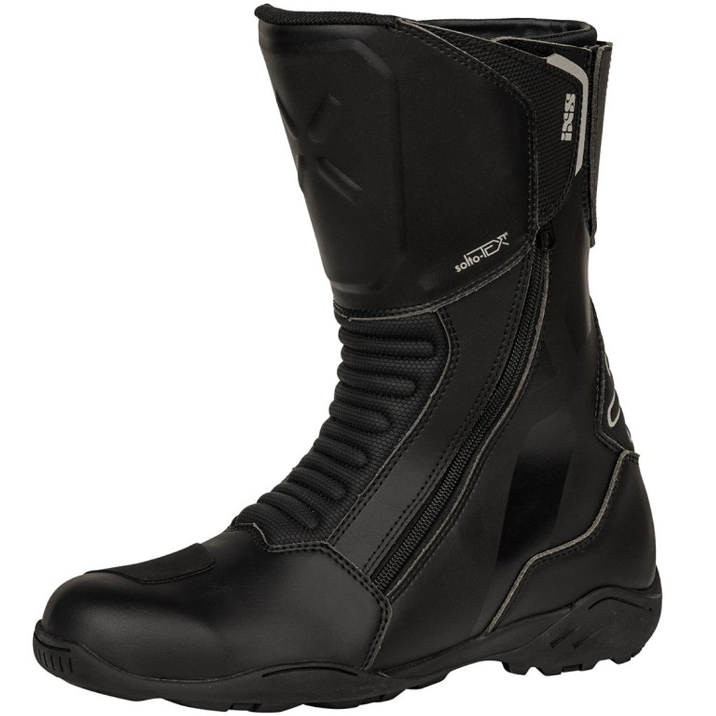 Robustní moto boty iXS TOURSTER‑STX 1.0 nabízejí vodě‑ a větruodolnou solto‑TEX® membránu, ochranné prvky okolo kotníku a komfortní vysoký střih – ideální pro pohodlné a bezpečné cestování na motorce v různém počasí.