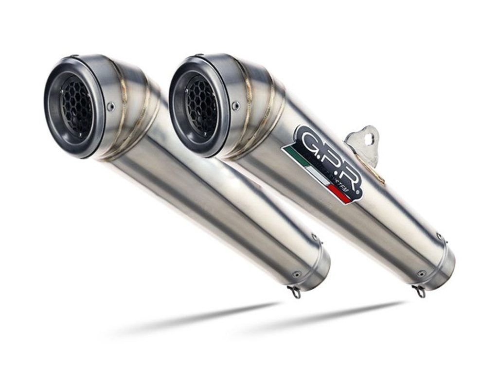 Dvojitá koncovka výfuku Slip-on GPR POWERCONE EVO K.148.PCEV Broušená nerezová ocel zahrnuje odnímatelné dB killery a spojovací svody