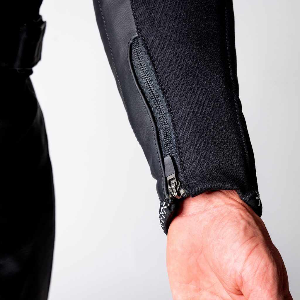 - Zipy s automatickým zámkem na manžetách a kotnících
