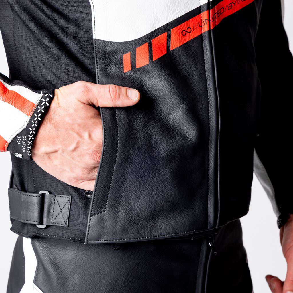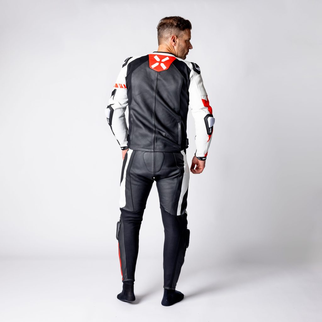 ACE 1.0 KOŽENÁ DVOUDÍLNÁ KOMBINÉZA ČERNO-BÍLO-ČERVENÁ