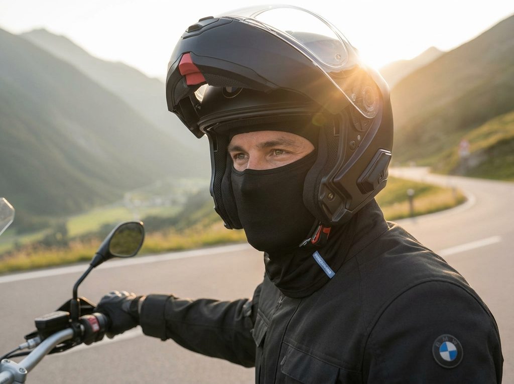 Extra lehká motocyklová kukla BMW ze 100% hedvábí s plochými švy zajišťuje špičkovou termoregulaci a maximální pohodlí pod přilbou v letním i přechodném období.