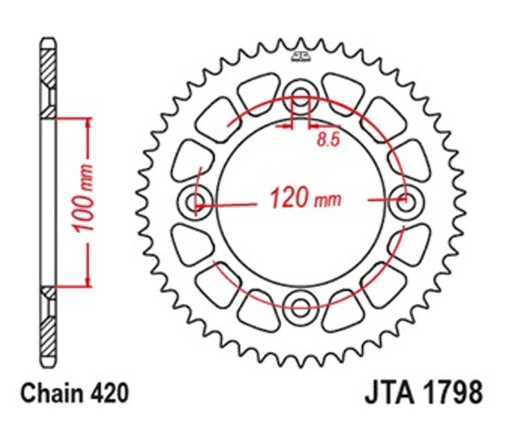 Hliníková řetězová rozeta JT JTA 1798-47BLK 47)T, nt((420 černá