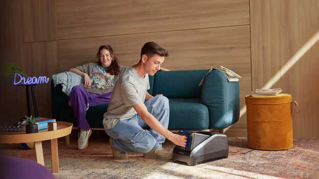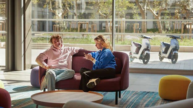 Skútr EM 1e nabíjejte v pohodlí domova, zatímco odpočíváte po náročném dni.