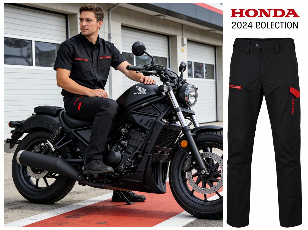 Stylové kalhoty s nápisem Honda z kolekce 2024.