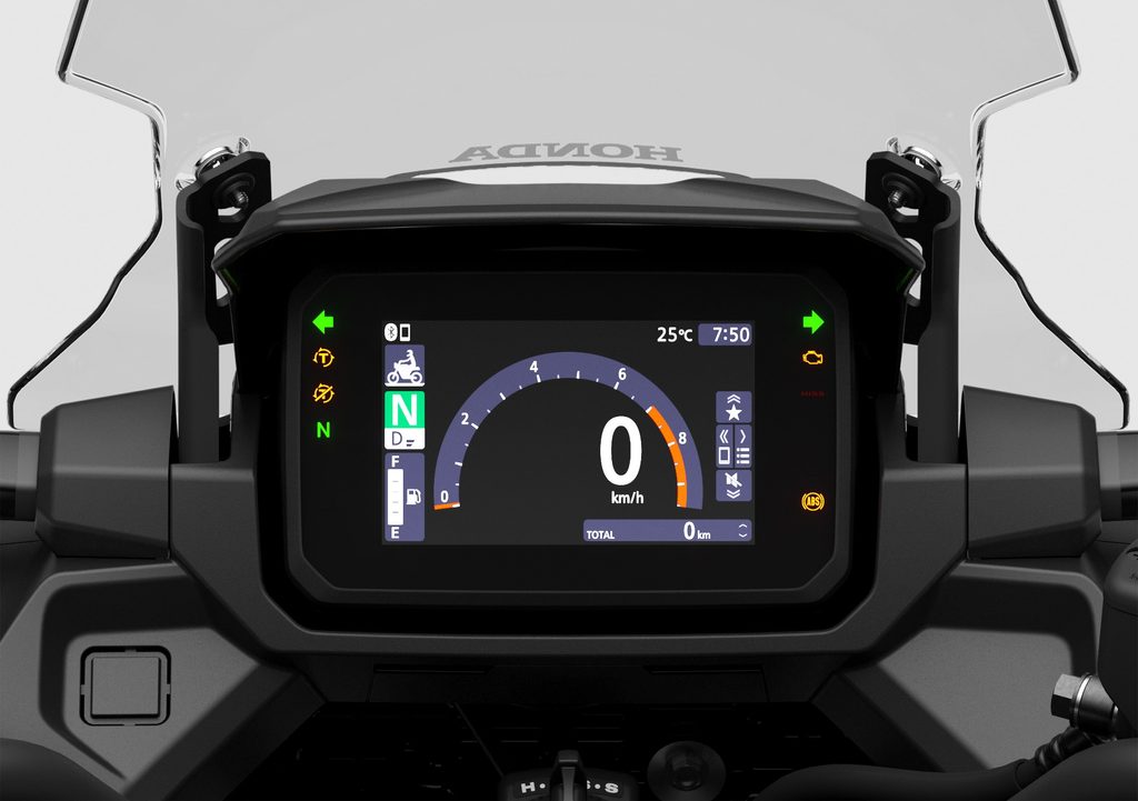 Je dobře viditelný na jasném slunečním světle, má podsvícený čtyřsměrný spínač na řídítkách pro intuitivní ovládání a umožňuje připojení chytrého telefonu pomocí aplikace Honda RoadSync pro navigaci od křižovatky ke křižovatce a dalšími funkcemi.