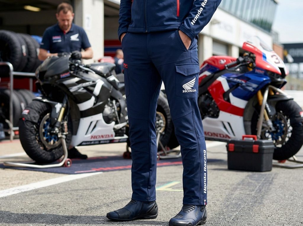 Kalhoty s logem Honda na stehně z kolekce RACING 2024.