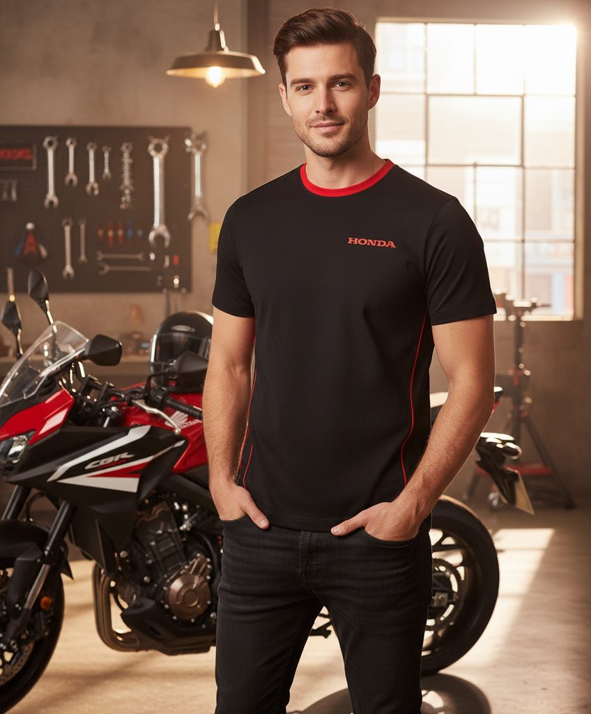Kolekce Paddock 2020 je základní řadou všech příznivců značky Honda. Triko v černé barvě má na hrudi logo Honda a všechny detaily má v červené barvě, které vylepšují vzhled a styl oděvu.