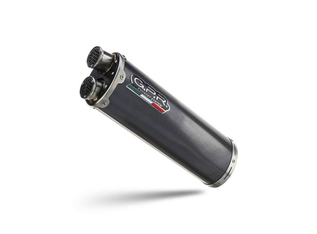 Koncovka výfuku Slip-on GPR DUAL POPPY E5.KT.108.1.DUAL.PO Karbonový vzhled zahrnuje spojovací svod a odnímatelný dB killer