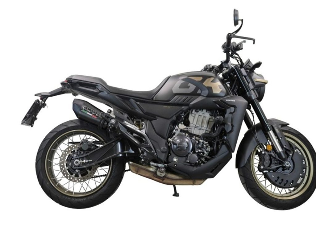 Tlumič výfuku má kuželovitý tvar se speciální geometrií, která začíná průměrem 90 mm a rozšiřuje se až na 130 mm v obvodu; jeho délka se liší podle typu motocyklu. Má tělo z nerezové oceli s povrchovou úpravou imitující karbon, nerezové koncovky vyrobené CNC obráběním a pětiúhelníkový výstup s dB killerem. Kulatý kuželový tvar má rozměry 390 × 130 mm.