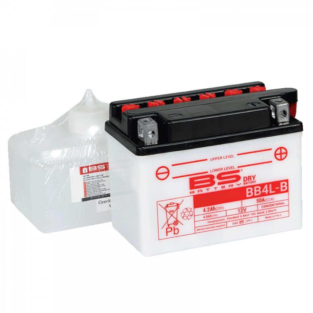 Konvenční motocyklová baterie BS-BATTERY BB4L-B (YB4L-B) Včetně balení kyseliny