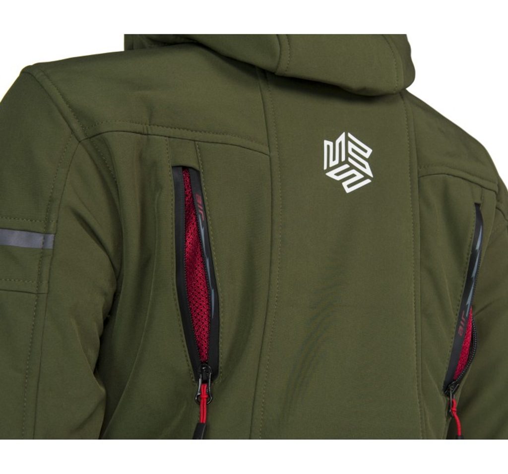 - Lehká softshellová bunda s vyjímatelnými protektory a městským designem