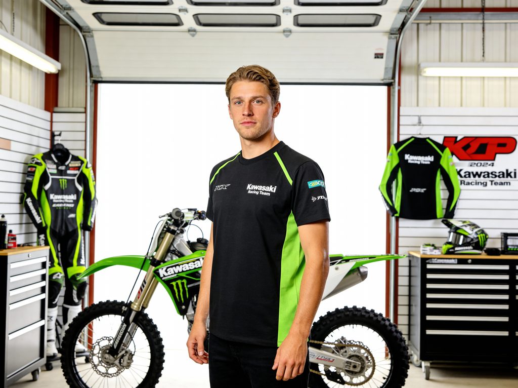 - Tištěná loga Kawasaki Racing Team a KX,