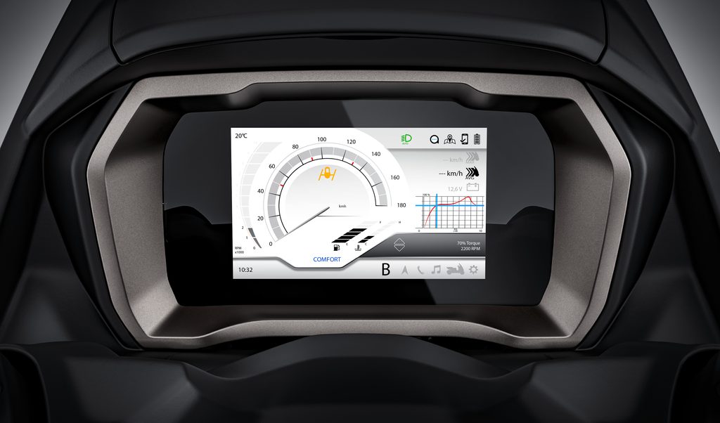 Futuristický asistenční systém ARAS (Advanced Rider Assistance System) odvozený od automobilů pomáhá při jízdě a zvyšuje bezpečnost tím, že zobrazuje řadu funkcí včetně potenciálně nebezpečných situací. K tomu všemu se přidává mimořádně praktický bezklíčový systém, který umožňuje zapnout zapalování a otevřít úložné prostory bez nutnosti vkládat klíč.