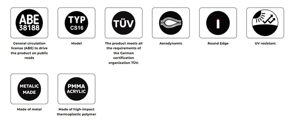 Je vyroben z PMMA, což zaručuje maximální ochranu proti případným nárazům a především proti větru a nepříznivým povětrnostním podmínkám během jízdy. Zároveň zvyšuje aerodynamické vlastnosti motocyklu.