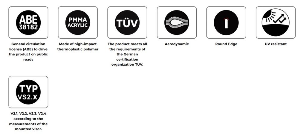 Plexi má zaoblené hrany ≥ 2 mm a splňuje normy TÜV.