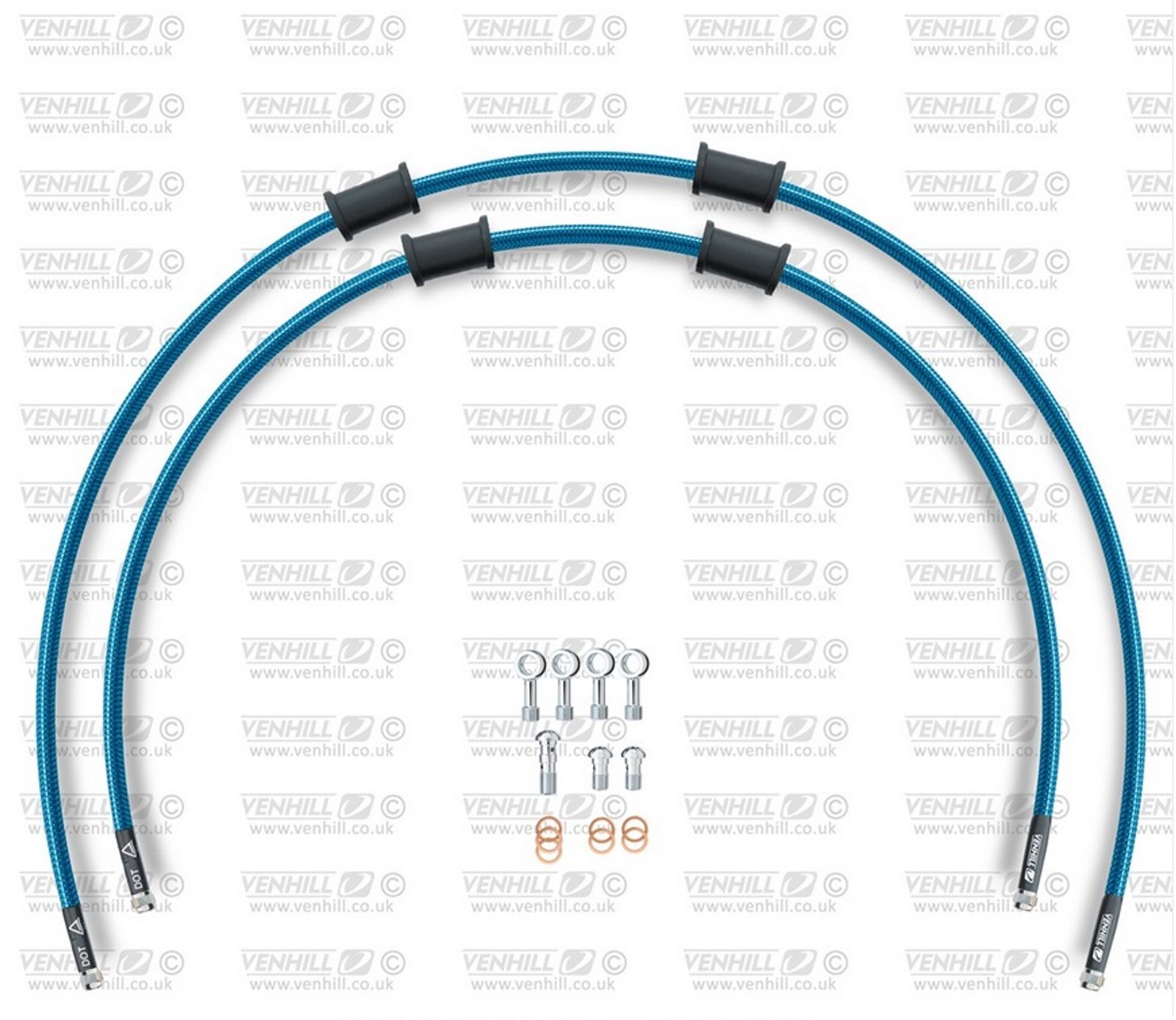 RACE Hadice přední brzdy sada Venhill POWERHOSEPLUS HON-10030F-TB (2 hadice v sadě) průhledně modré hadice, chromové koncovky