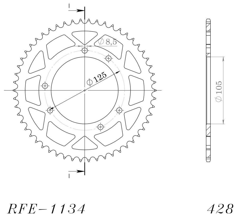 Řetězová rozeta SUPERSPROX RFE-1134:52-BLK černý 52 zubů, 428