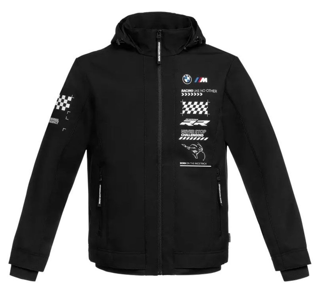 - Velký potisk Motorsport vlevo na hrudi, včetně nápisu BMW Motorrad Motorsport, nápisu „Racing like no other“ a znaku RR