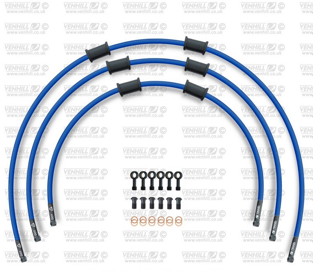 STANDARD Hadice přední brzdy sada Venhill POWERHOSEPLUS KAW-11003FB-SB (3 hadice v sadě) modré hadice, černé koncovky