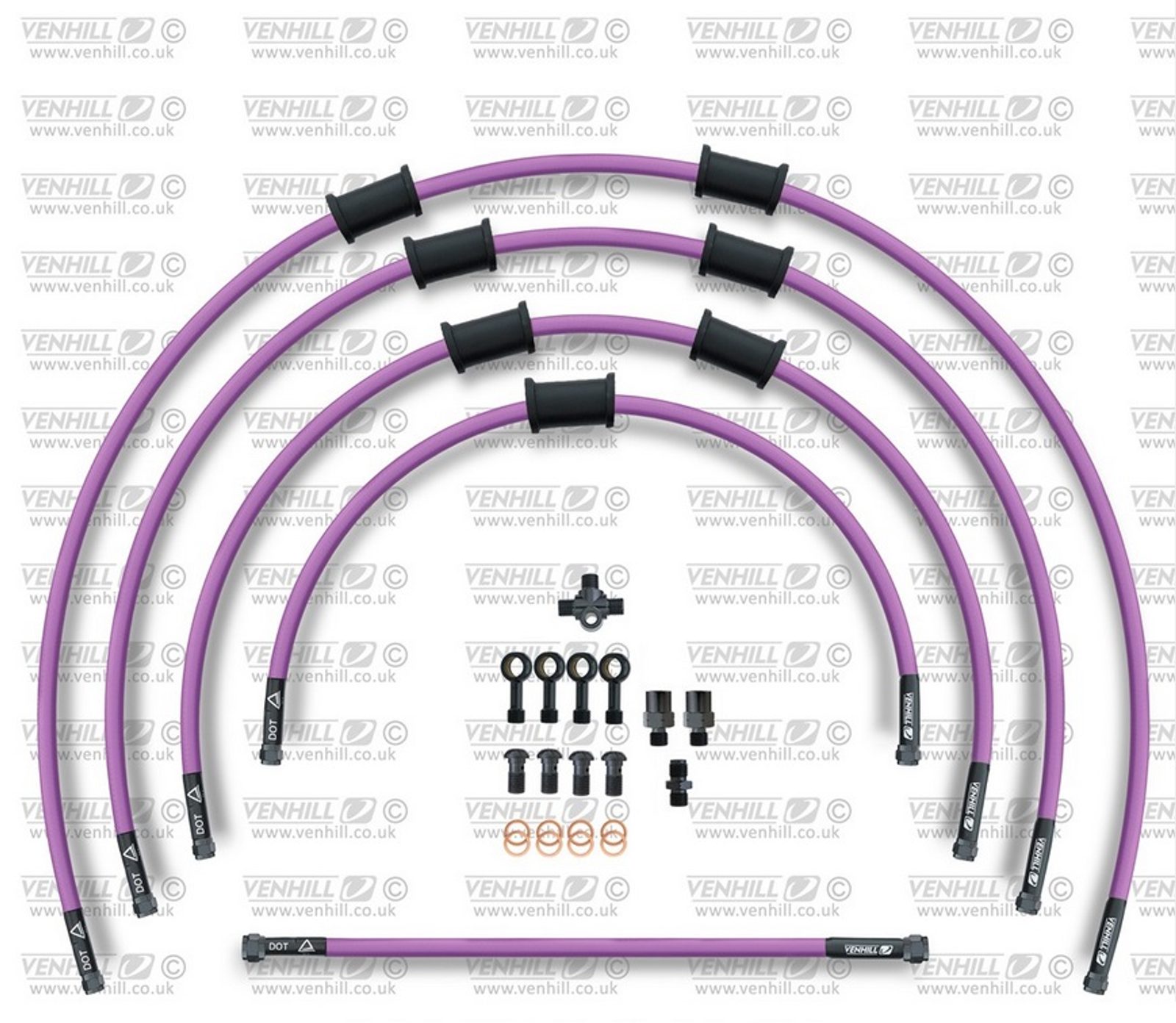 STANDARD Hadice přední brzdy sada Venhill POWERHOSEPLUS KAW-5007FB-PU (5hadic v sadě) fialové hadice, černé koncovky