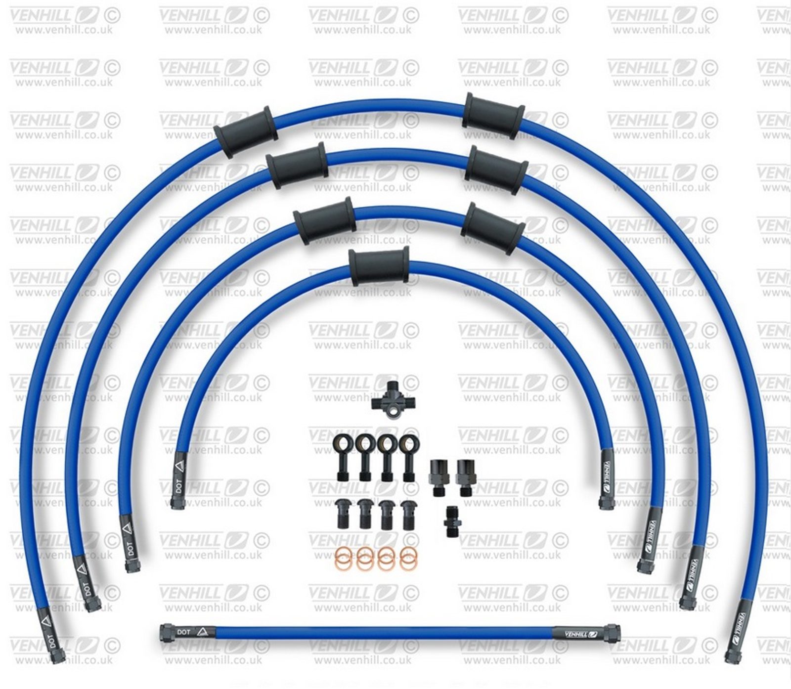 STANDARD Hadice přední brzdy sada Venhill POWERHOSEPLUS SUZ-11003FB-SB (5hadic v sadě) modré hadice, černé koncovky