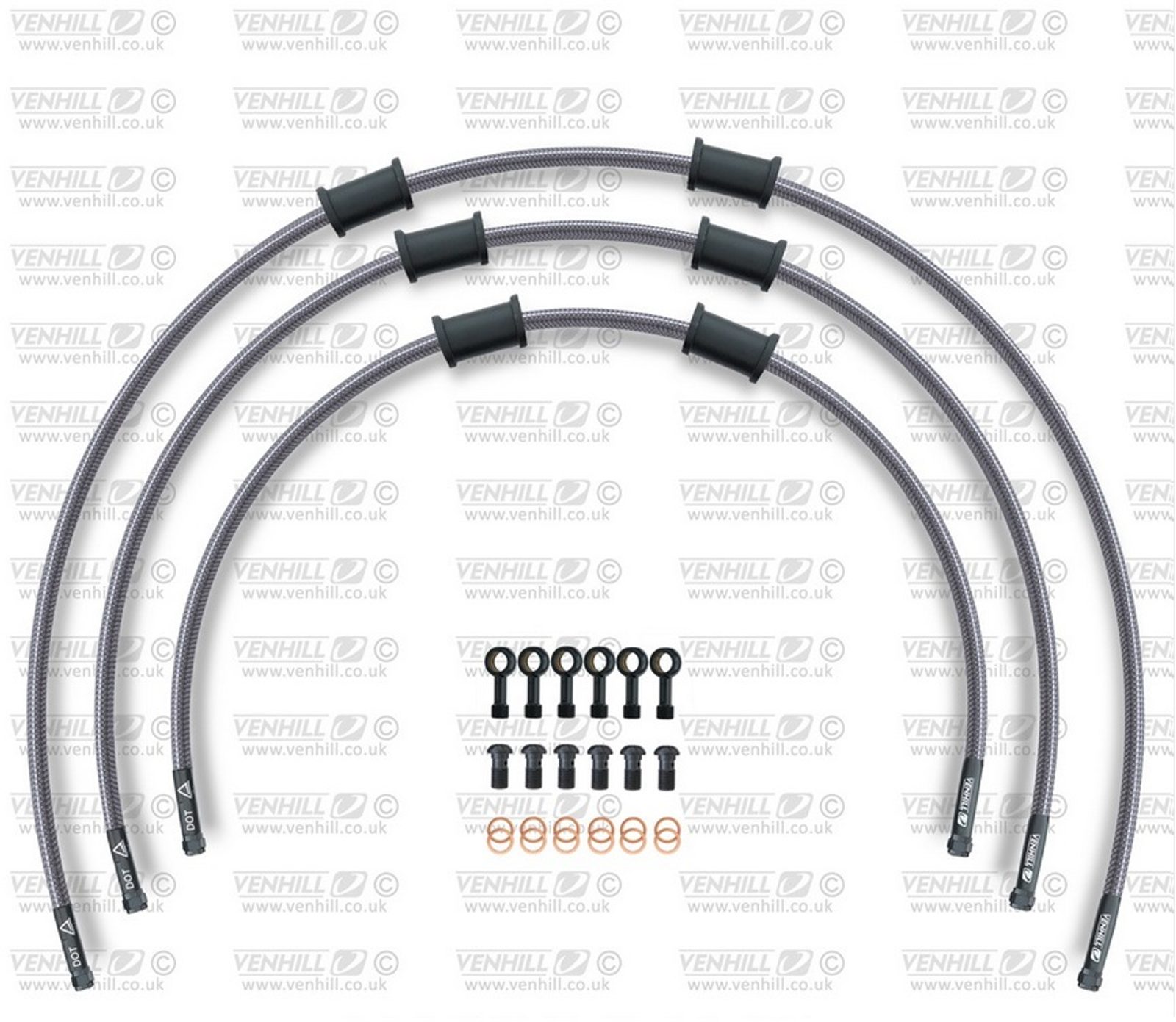 STANDARD Hadice přední brzdy sada Venhill POWERHOSEPLUS SUZ-11012FB (3 hadice v sadě) průhledné hadice, černé koncovky