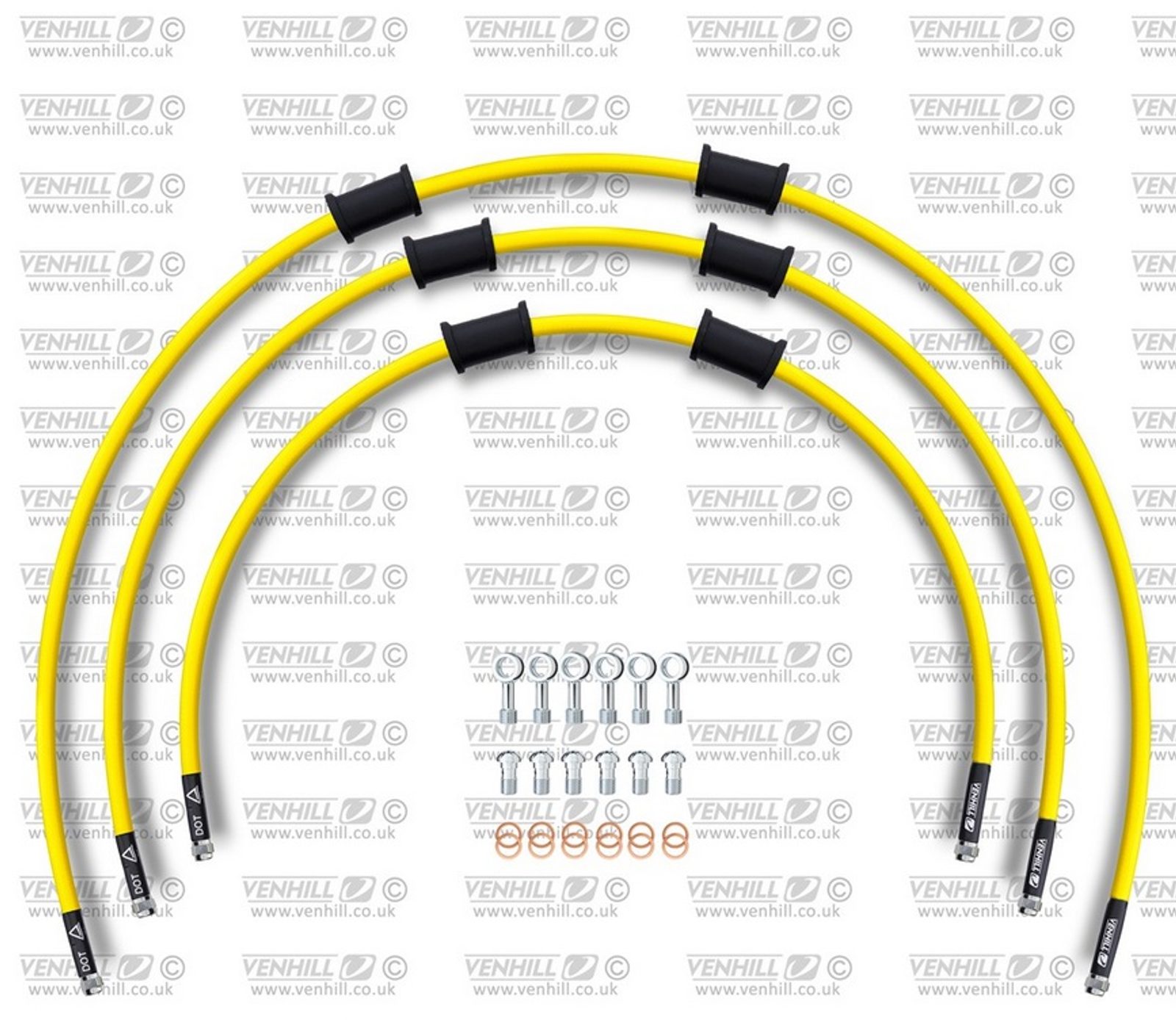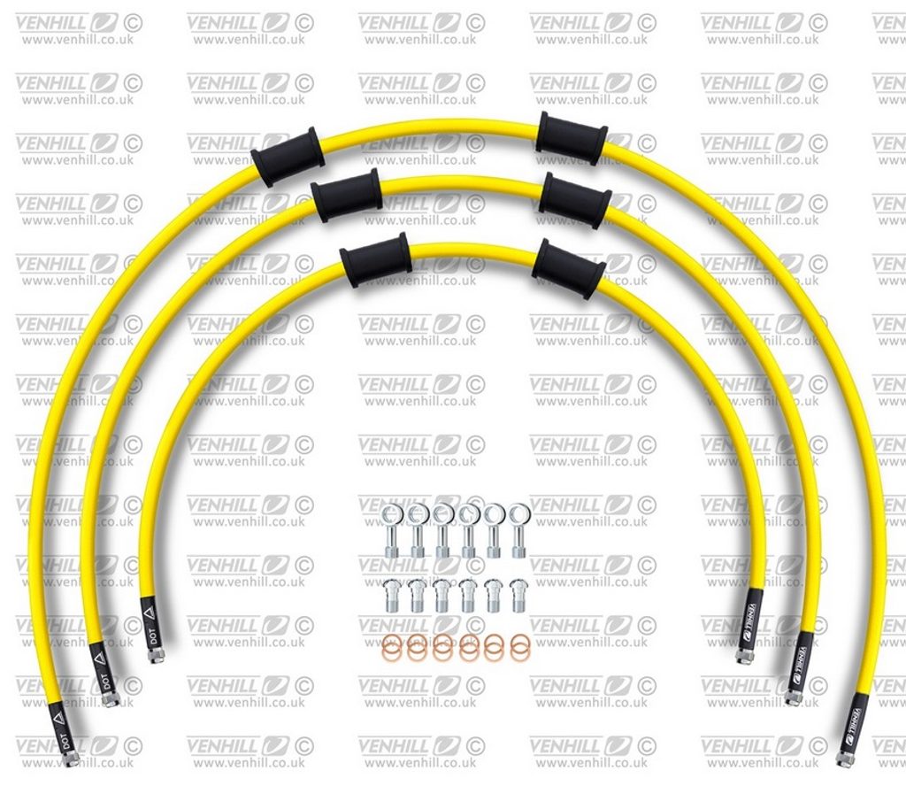 STANDARD Hadice přední brzdy sada Venhill POWERHOSEPLUS YAM-10003F-YE (3 hadice v sadě) žluté hadice, chromové koncovky