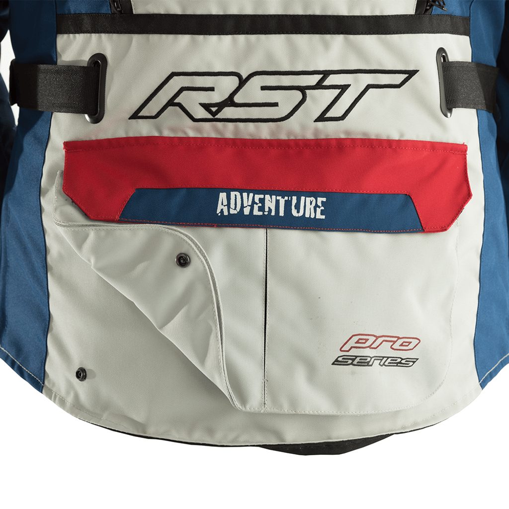Mnoho kapes – včetně velké odnímatelné zadní kapsy na mapy (kterou můžete použít jako ledvinku) zajišťuje dostatek úložného prostoru. Pro delší cesty využijete i kapsu na RST hydro vak (k dispozici samostatně) a odnímatelný nákrčník jsou další praktické detaily. Pro lepší pocit a hlavně pro to, aby bunda seděla tak, jak má, je přidaný „padákový popruh“, který udržuje bundu na místě.