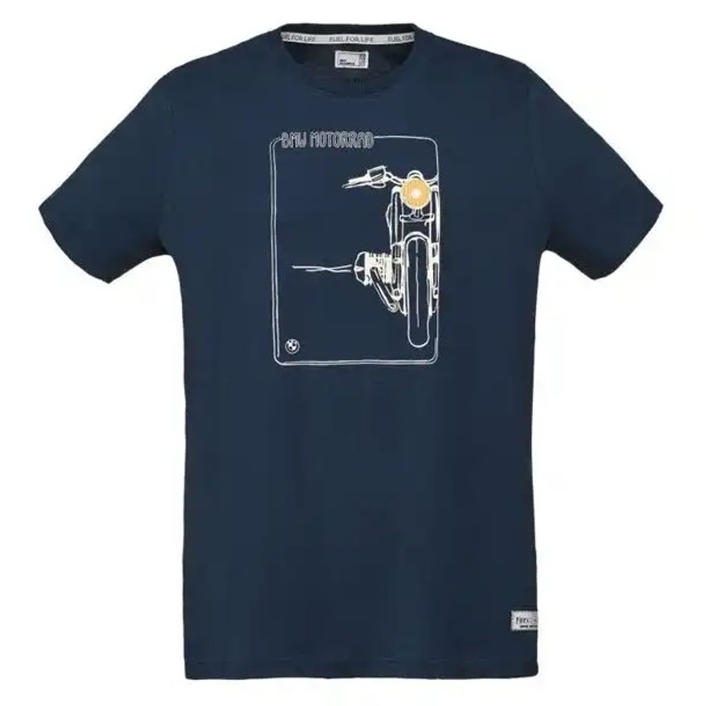 - Velký potisk s motivem motocyklu, nápisem BMW Motorrad a logem BMW na hrudi