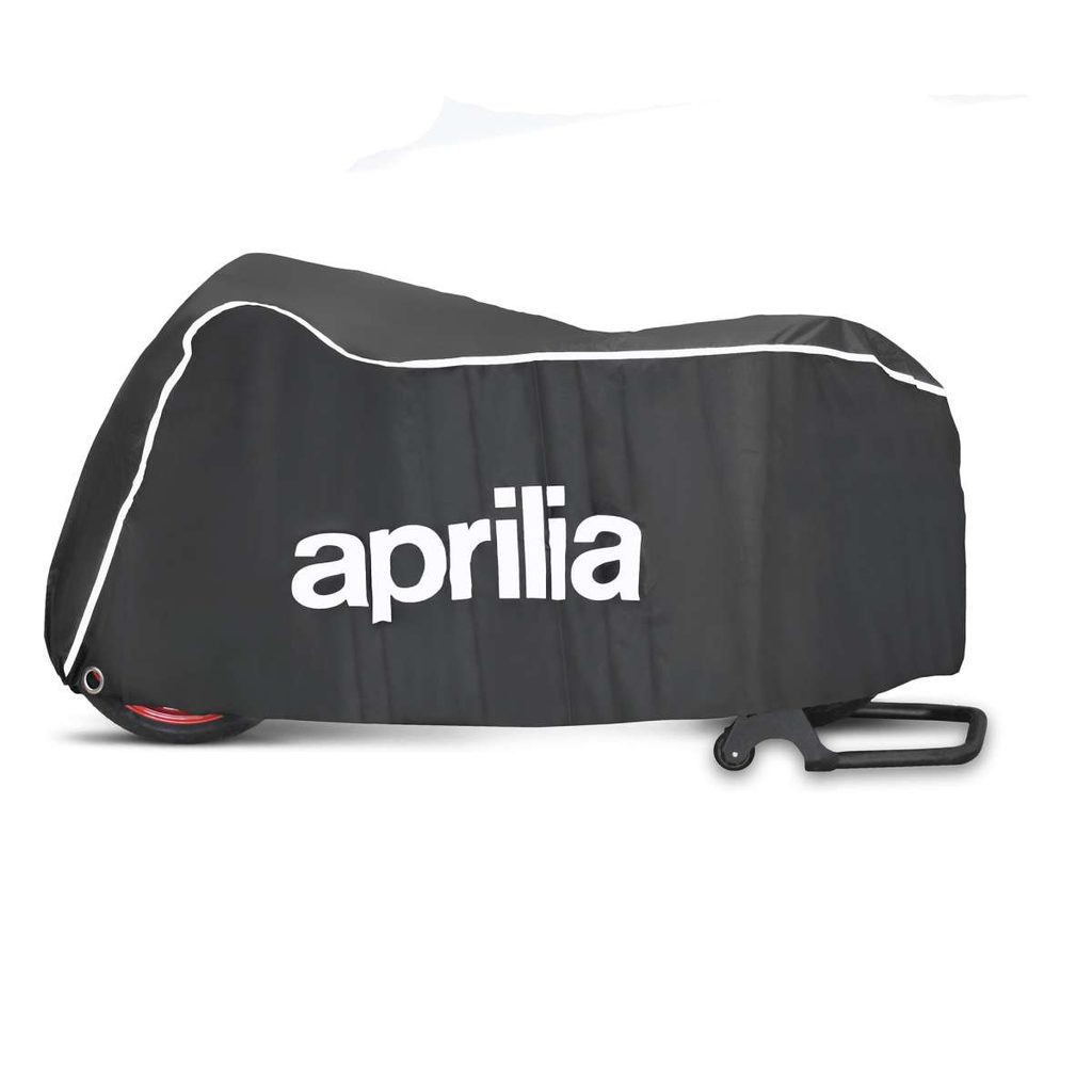 Venkovní kryt z voděodolné tkaniny, která se hodí k siluetě kola. Snadno nasaditelný kryt chrání kolo při venkovním parkování i v případě nepříznivého počasí. Značka Aprilia jej dodává s pouzdrem pro uložení v době, kdy není na motocyklu používán.
