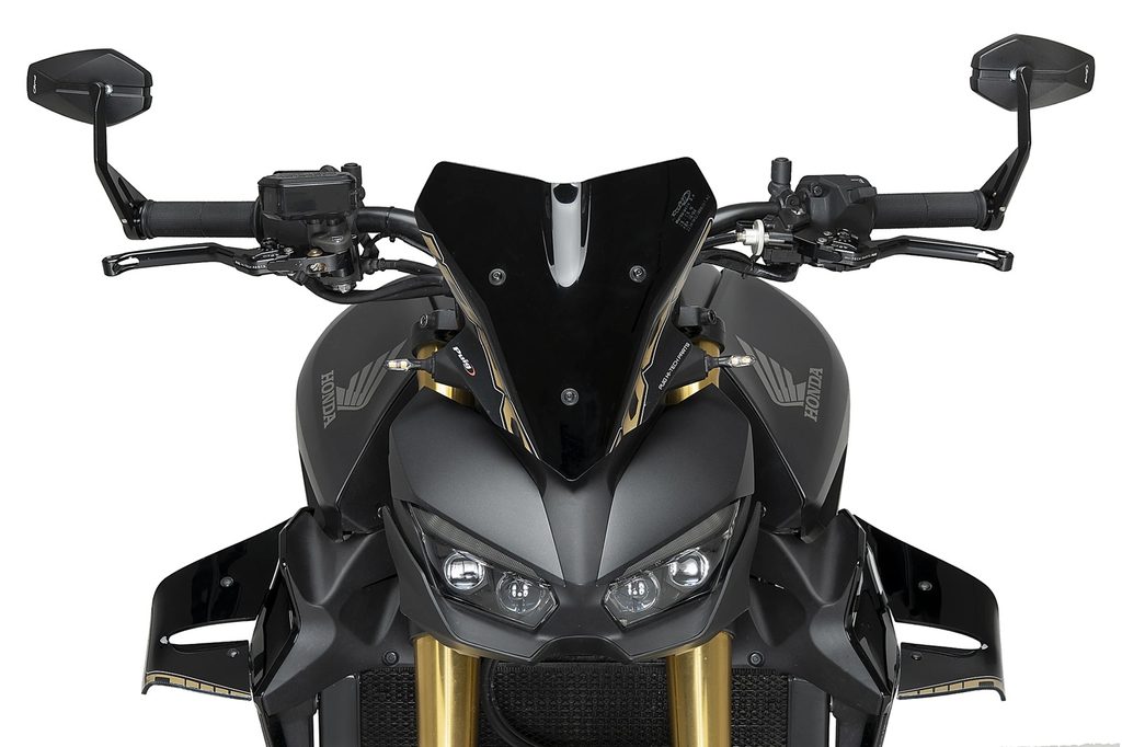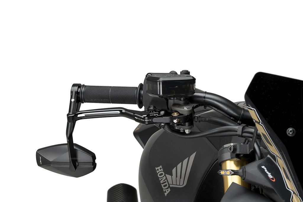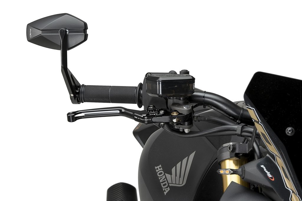 Uchycuje se na konci řídítek a lze jej instalovat v horní nebo boční pozici, přičemž perfektně ladí s různými typy motocyklů, zejména s naháči, kterým dodává sportovnější a více individualizovaný vzhled.
